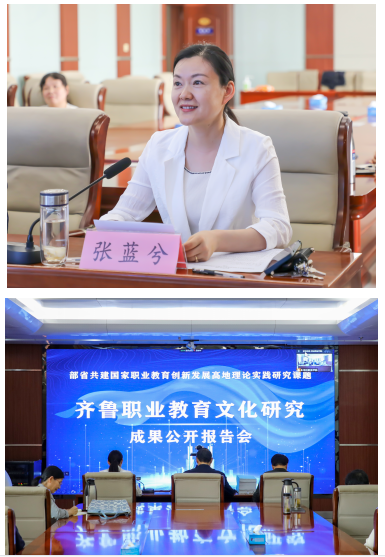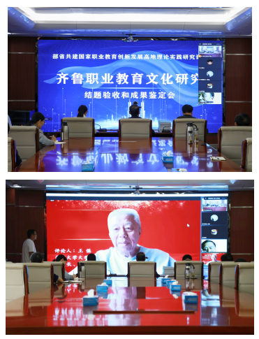《齊魯職業(yè)教育文化研究》項目是由棗莊職業(yè)學院牽頭,聯(lián)合天津職業(yè)技術(shù)師范大學、威海海洋職業(yè)學院共同完成。此次會議采取線上線下結(jié)合的方式召開,分為成果公開報告會、結(jié)題驗收和成果鑒定會兩個階段進行。副院長張藍兮主持會議。